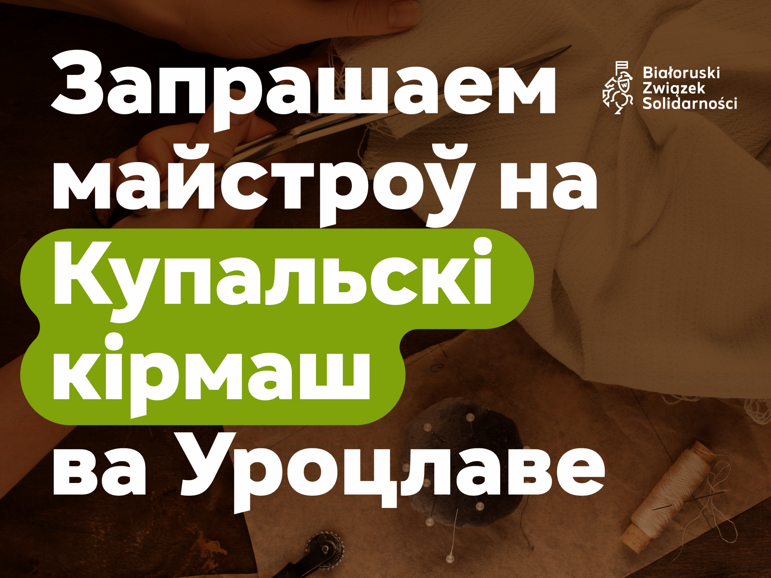Суполка беларусаў Уроцлава запрашае майстроў і рамеснікаў паўдзельнічаць у святочным кірмашы, прысвечаным Купаллю. Свята адбудзецца 28 чэрвеня. Мы сустрэнемся на востраве Wyspa Opatowicka, каб адзначыць адно з найстарадаўнейшых народных свят, прысвечаных сонцу і росквіту зямлі, каб разам адчуць подых лета, патанчыць, паспяваць, смачна паесці і проста пабыць разам. Каб далучыцца да кірмашу, трэба запоўніць форму….
