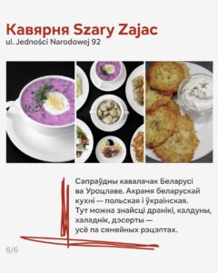 Уроцлаў стаў домам для шматлікіх беларусаў. І разам з намі сюды пераехалі нашыя смакі, традыцыі і ўтульныя месцы. Калі вы сумуеце па драніках “як дома”, шукаеце аўтэнтычныя дэсерты ці проста хочаце бавіць час з сябрамі за кубачкам кавы – гэтая падборка менавіта для вас! А яшчэ гэта выдатная магчымасць падтрымаць беларускі бізнес.